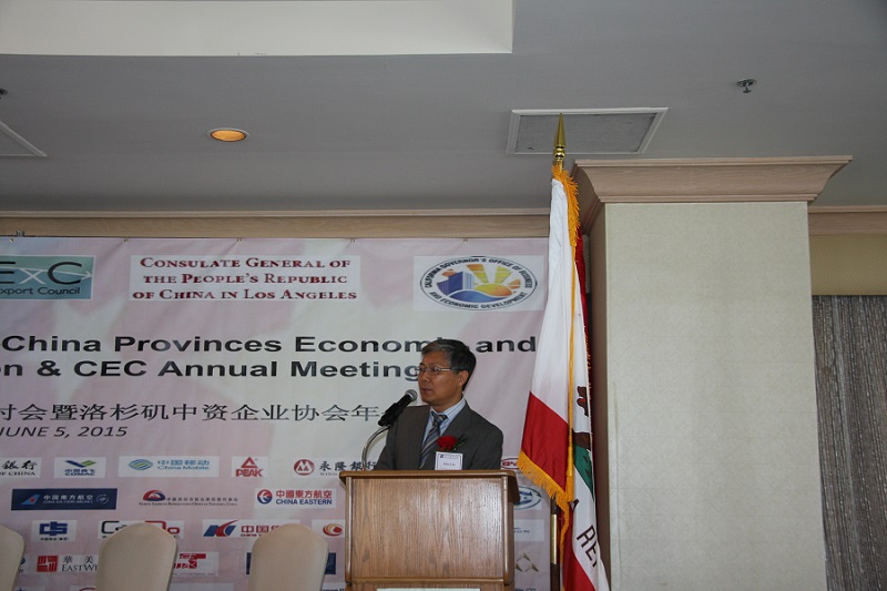 6月5日,刘健总领事出席中美省州经贸合作研讨会暨洛杉矶中资企业协会年会并作主旨演讲。