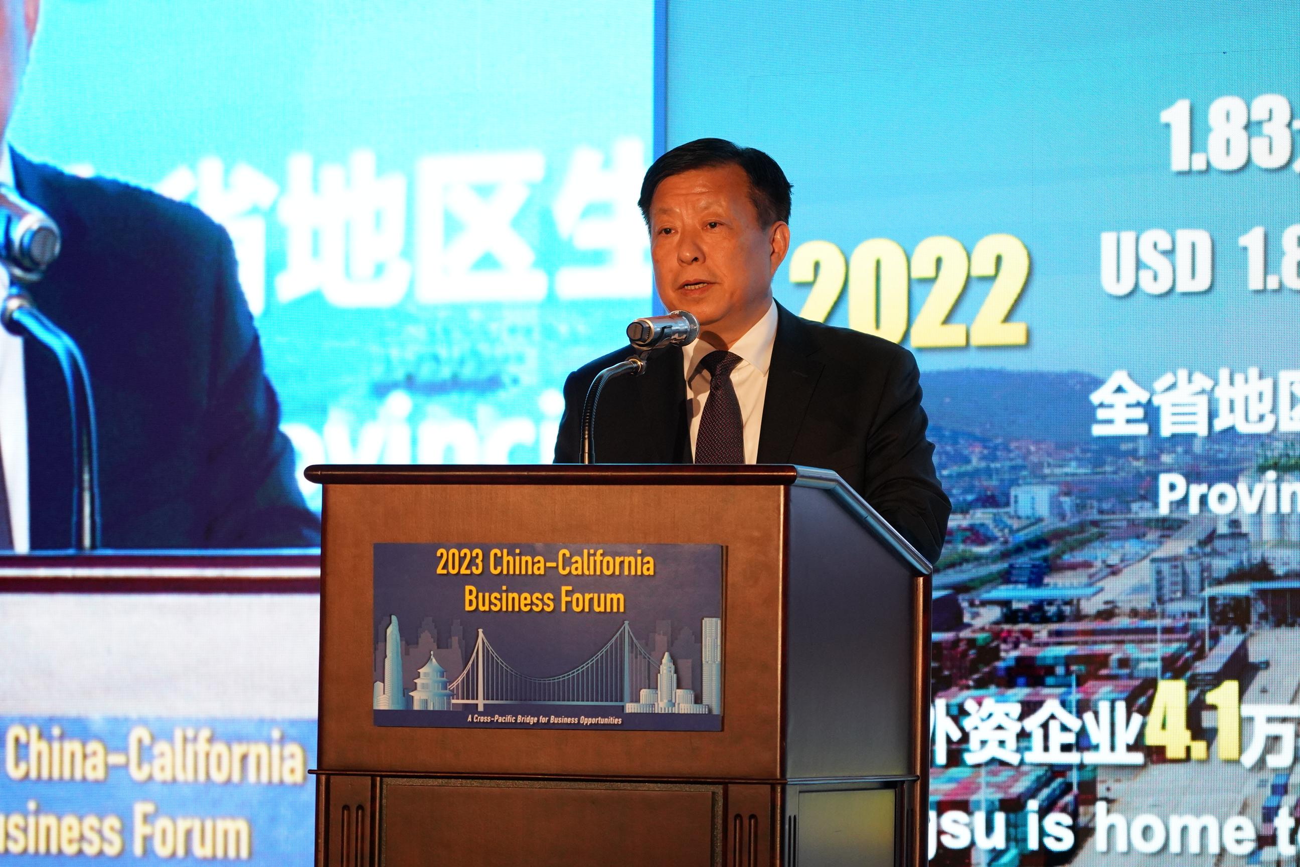 方伟在主旨演讲中介绍了江苏省经济、科教、文化和绿色低碳等领域发展情况,分享了江苏省与加州开展地方交流合作的成功案例。希望以此次论坛为新的起点,两省州深入交流合作,努力打造更多精品力作和标杆项目,为中美关系健康稳定发展作出新贡献。