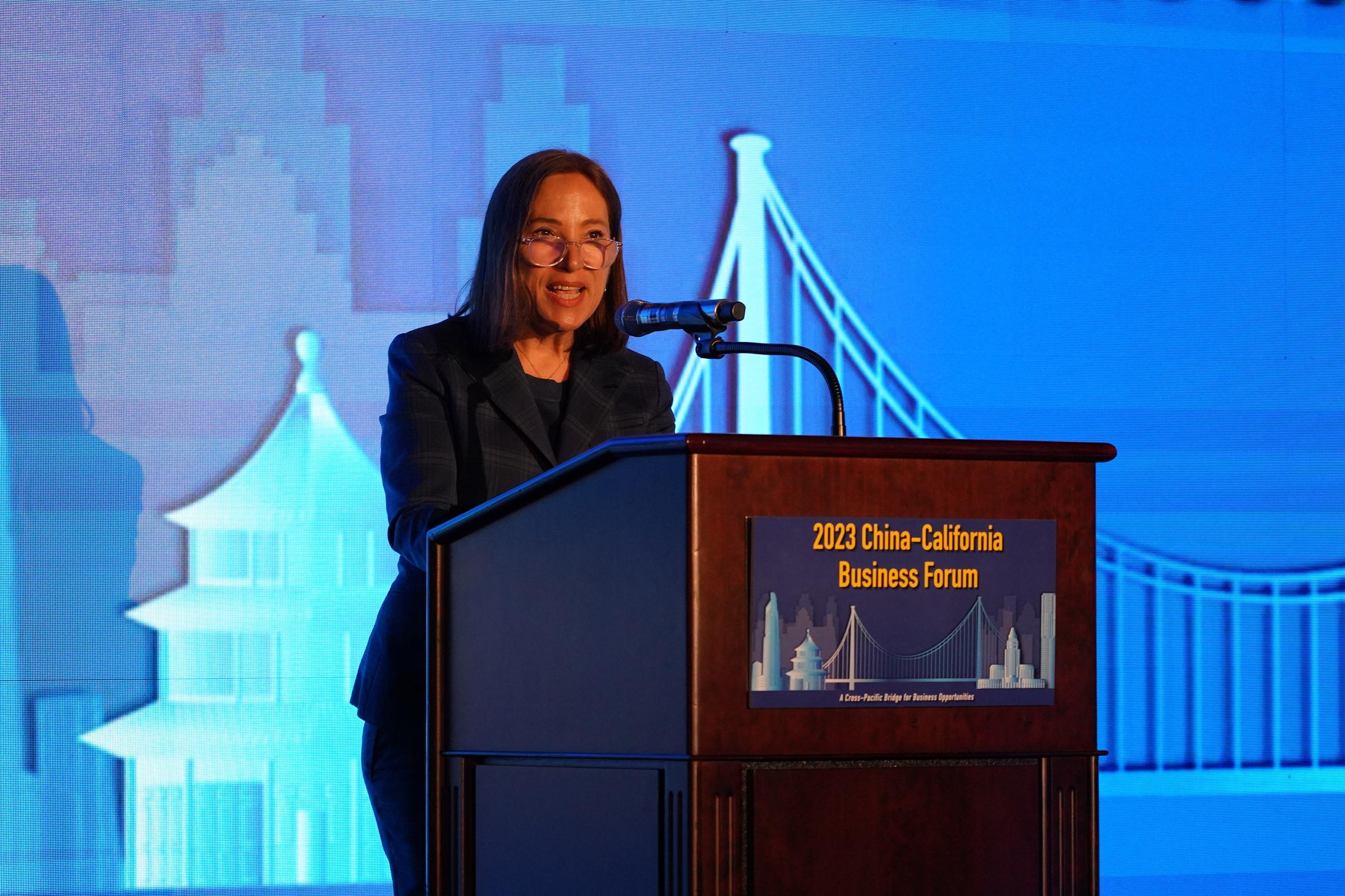 2023年中国—加州经贸论坛于5月22日在洛杉矶举行。本次论坛是“中国省与美国加州贸易投资合作联合工作组”框架下举办的第五次年度经贸促进活动,也是疫情后首次重启。江苏省副省长方伟、加州副州长康伊莲、洛杉矶市副市长布罗马吉、中国国际进口博览局副局长孙成海等分别在开幕式和午餐会上作主旨演讲。中国驻洛杉矶总领事郭少春出席论坛并向各界来宾致欢迎辞。